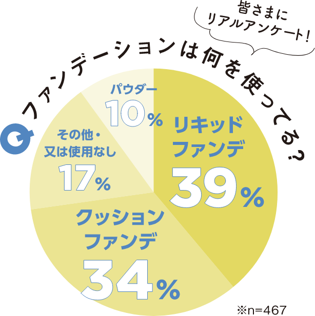 トップはリキッドで、僅差でクッションが追い上げた結果となりました。最近のリキッドファンデは厚塗り感も出ず、保湿成分たっぷりでまるで美容液のよう。ここ数年でかなり進化しているアイテム。